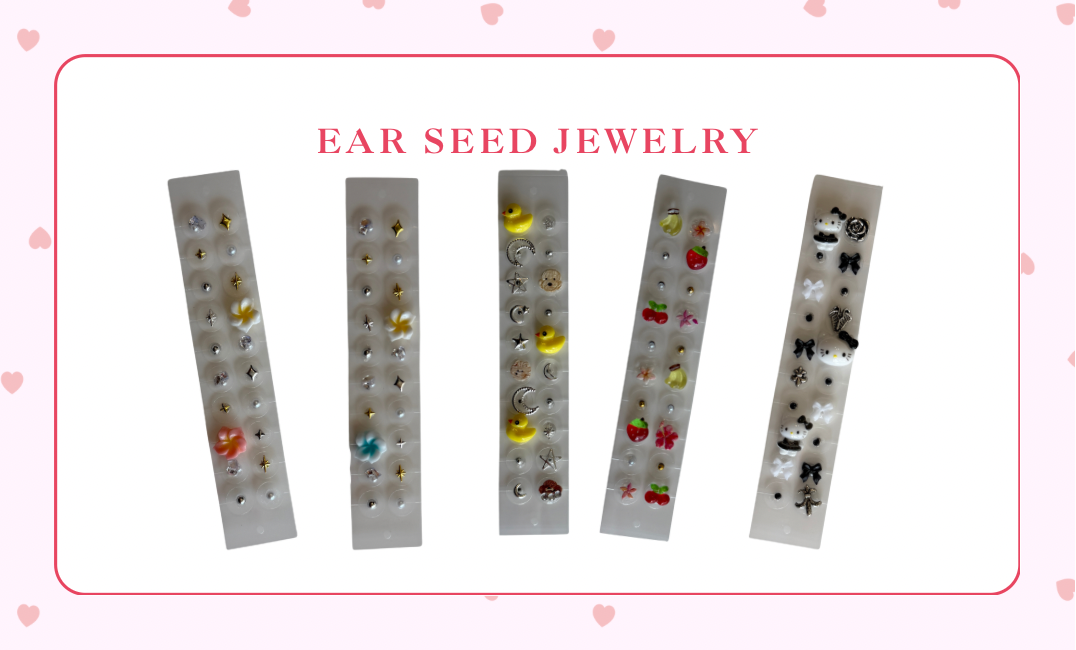 Hawaiiで耳ツボの展示会を行った際に、特に人気だったパーツをぎゅっと詰め込んだ耳ツボシート! プルメリア×小ぶりなキラキラパーツで、 セルフケアを楽しみながら、耳元も気持ちも Hawaii vibes に包まれるデザインです。 【注意事項】をお読みください。