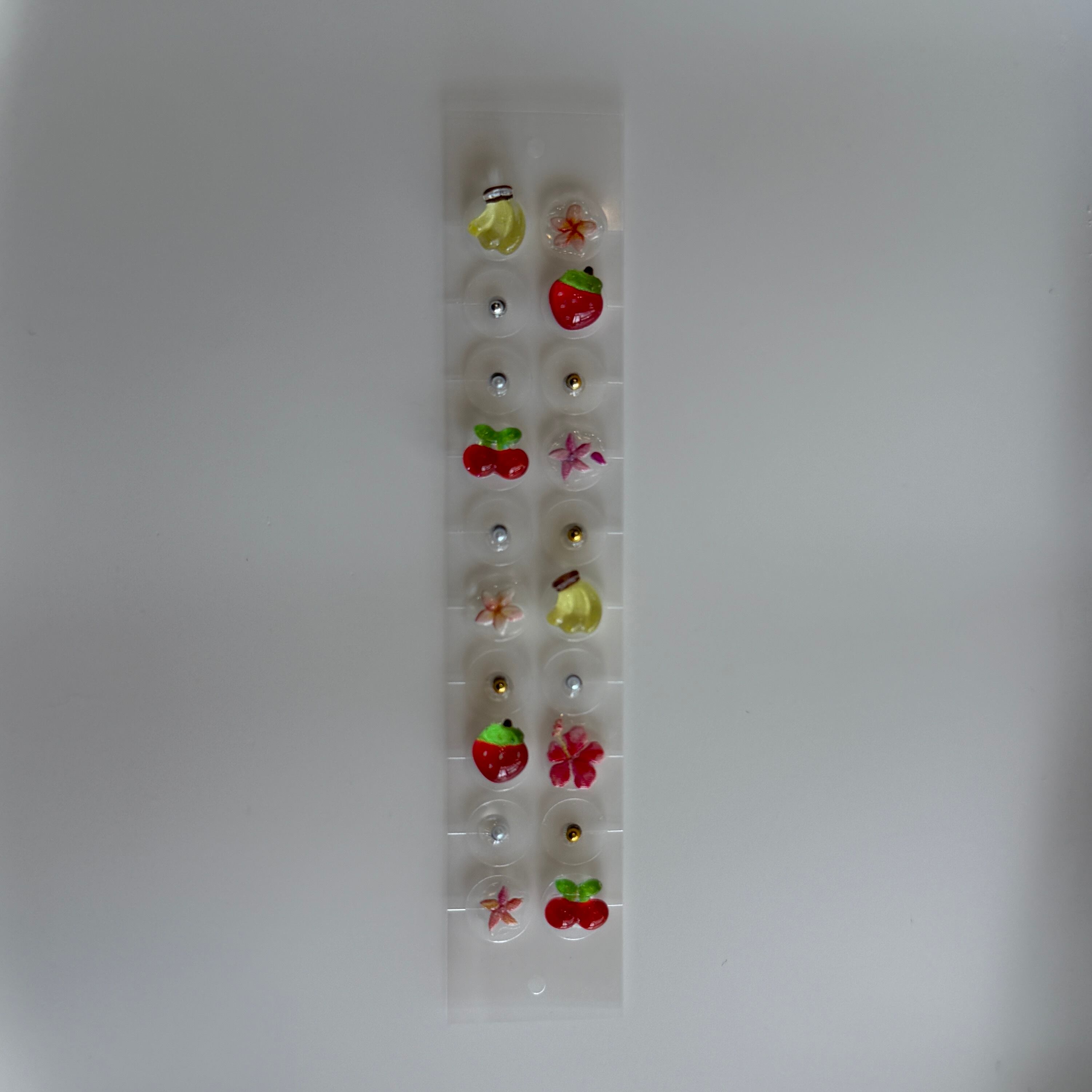 セルフケアを楽しみつつ、いちご狩りシーズンには両耳にイチゴパーツをつけて。